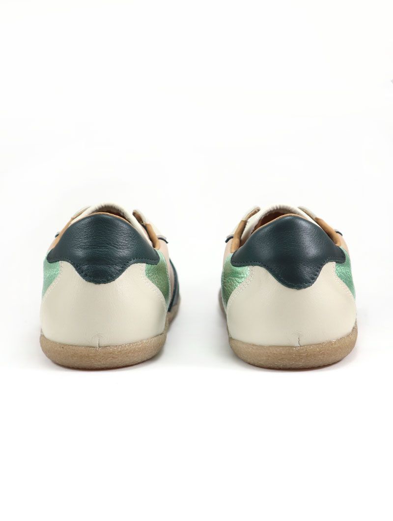 Características de estas zapatillas barefoot mujer verde y rosa metalizado son: