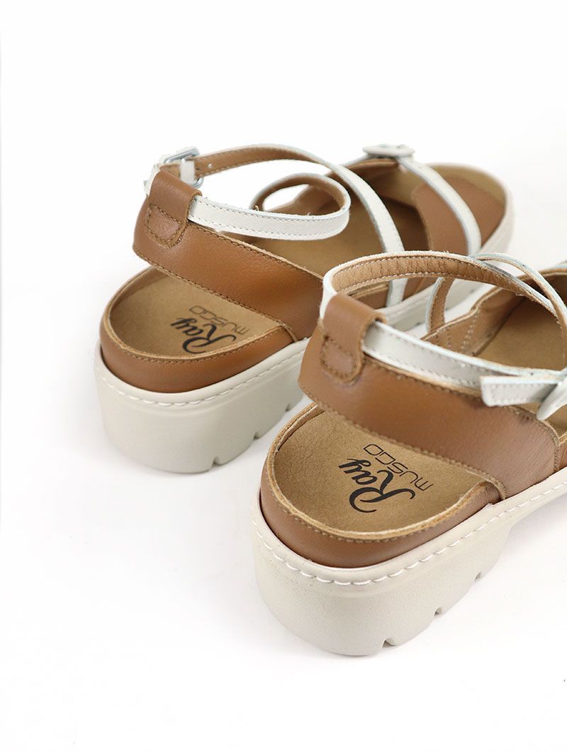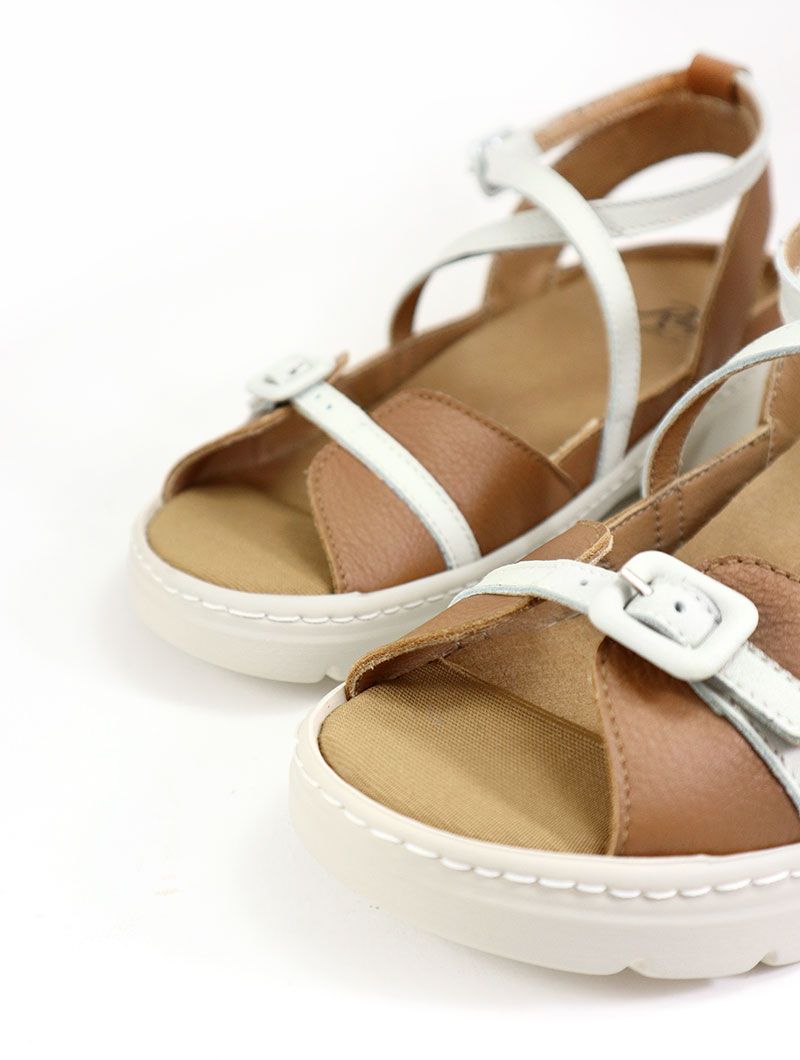 Estas sandalias para plantillas bicolor cuero y blanco tienen horma normal, pero es fácil de ajustar a diferentes anchos de pies, incluso muy anchos y con empeine alto