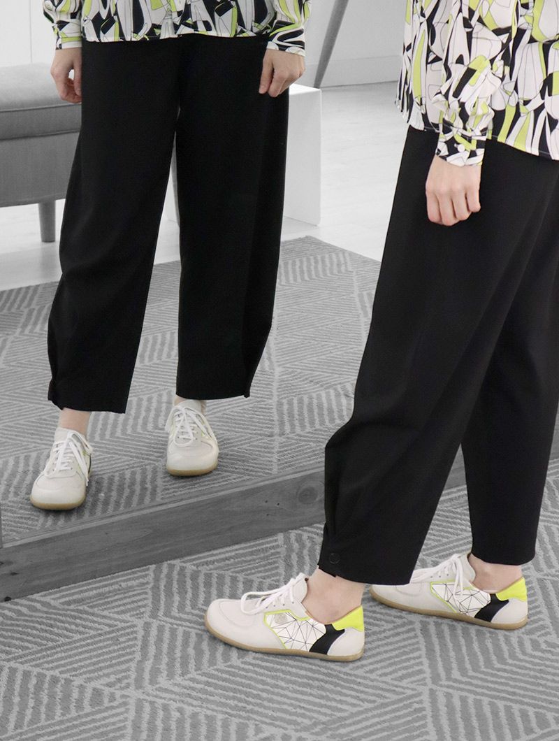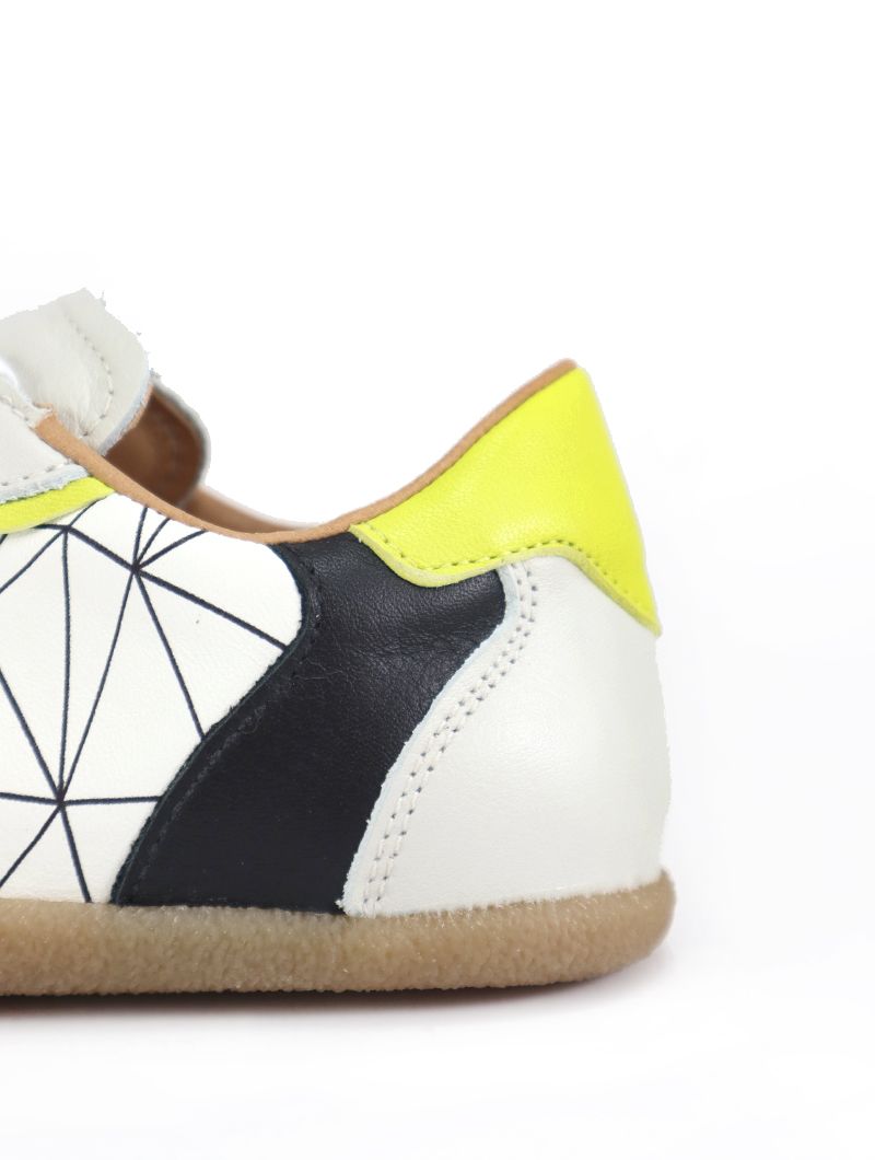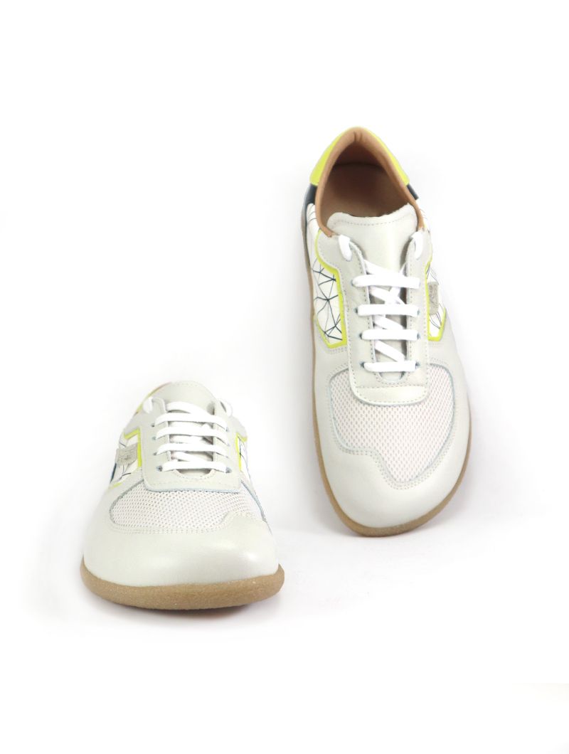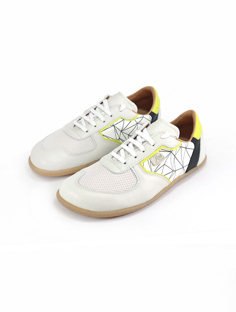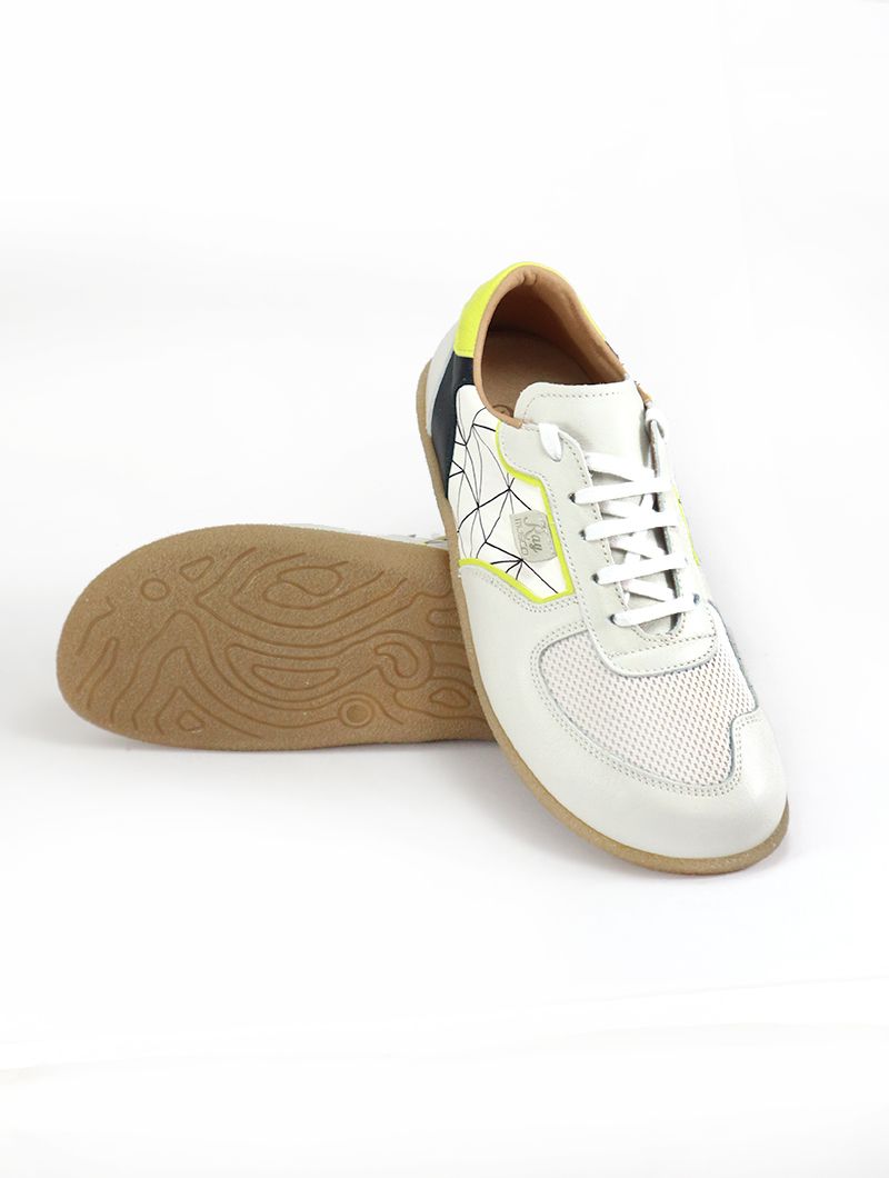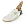 El calzado respetuoso, como estas zapatillas barefoot mujer gris, negro y limón, es el más parecido a caminar descalzo cuya horma se asemeja lo máximo posible a la forma del pie.