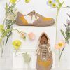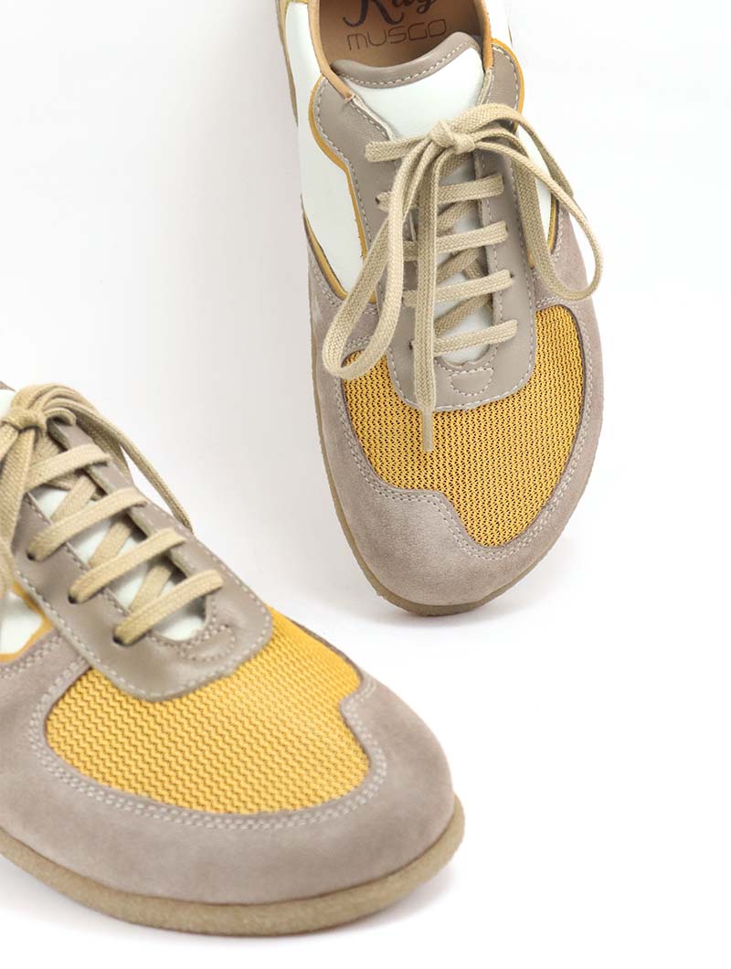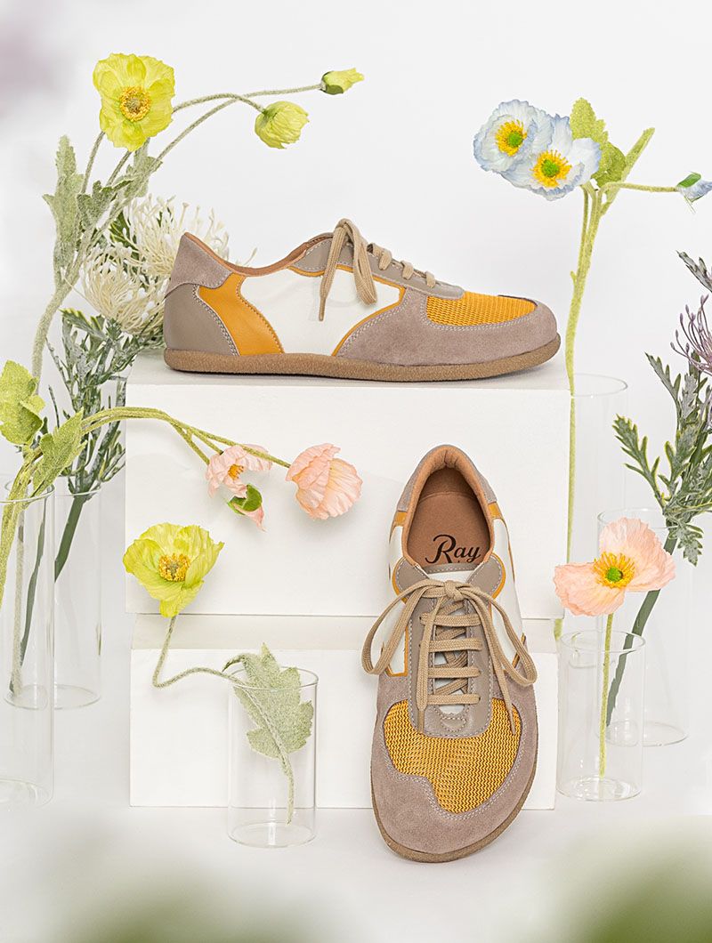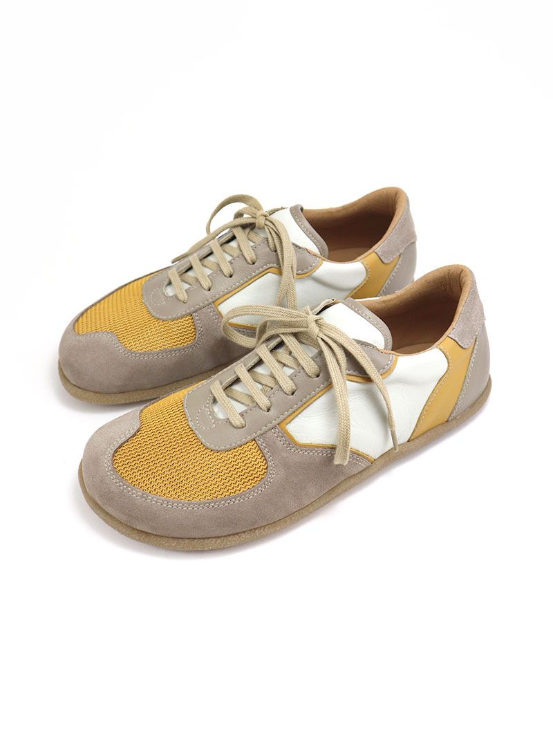 El calzado respetuoso, como estas zapatillas barefoot mujer mostaza, es el más parecido a caminar descalzo cuya horma se asemeja lo máximo posible a la forma del pie.