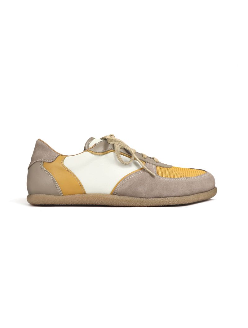 Las características de estas zapatillas barefoot mujer mostaza son: